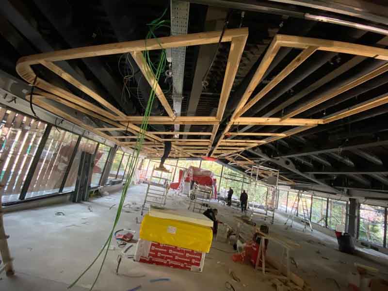 Soffitto in legno di pino realizzato per la prestigiosa università LUISS Guido Carli